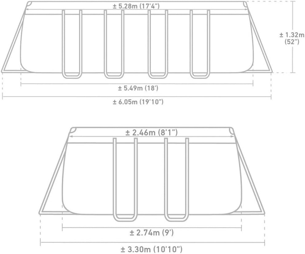 • Produktabmessungen: 5,49L x 2,74B x 1,32H m